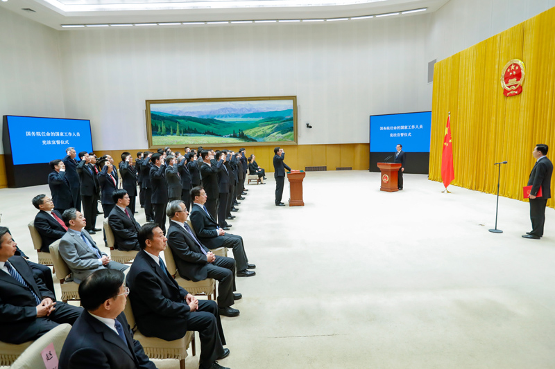 3月17日,国务院在中南海举行宪法宣誓仪式。国务院总理李克强监誓。