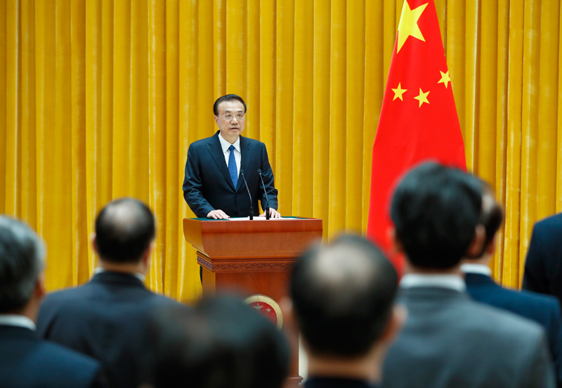 宣誓后,李克强希望大家以责履誓、以行践诺。他要求,要坚持以习近平新时代中国特色社会主义思想为指导,依宪施政、依法行政。一要严格依法履职,把尊法学法守法用法化为自觉行动,不断提高运用法治思维和法治方式推动工作的能力,推进法治政府建设。二要倾心为民造福,坚持以人民为中心的发展思想,围绕市场主体和民生急需制定实施各项政策,为市场主体纾困助力,更好解决民生痛点难点问题。三要奋力实干担当,善用改革开放的思路和办法,秉持务实精神和作风,竭力勤勉任事,持续攻坚克难,不断创造人民满意的新业绩。四要守牢清廉底线,明纪自守、怀德自重,节用裕民、清白做事。不负党和人民重托,为建设富强民主文明和谐美丽的社会主义现代化强国不懈奋斗。