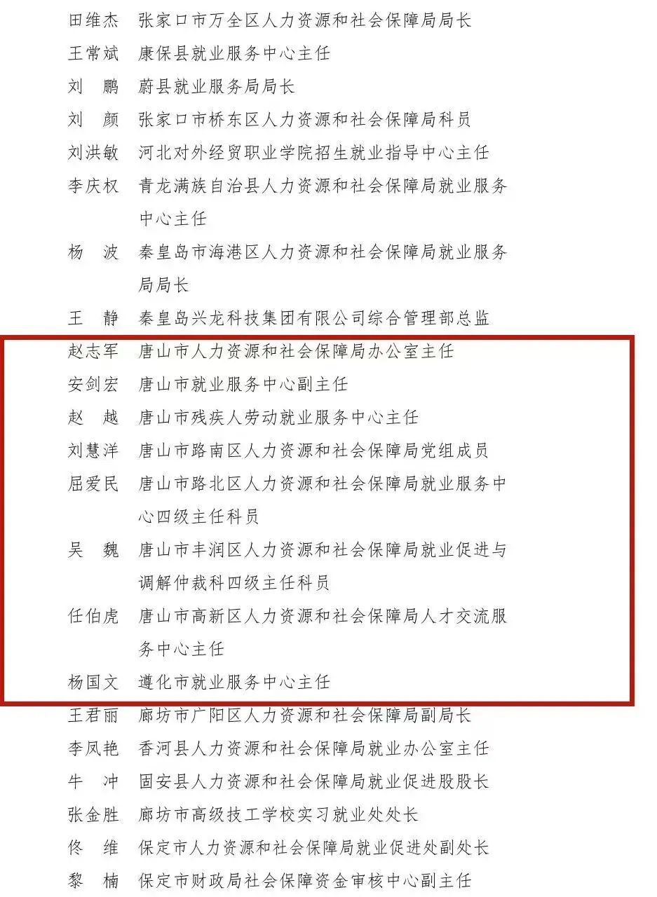 名单公示|河北省就业创业工作先进集体和先进个人,唐山入选的有→